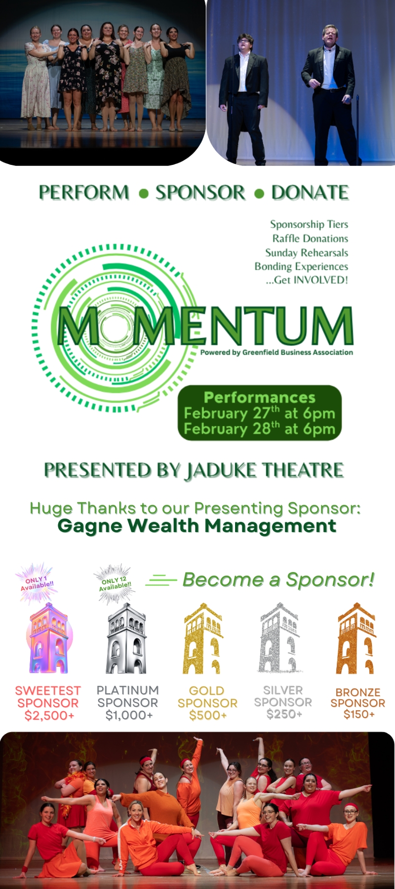 Be a part of Greenfield's 'Momentum,' by dusting off those dancing shoes and signing on to spend five wintry Sundays with friends and colleagues, in preparation for the GBA's FIRST EVER fundraiser at JaDuke Theater!