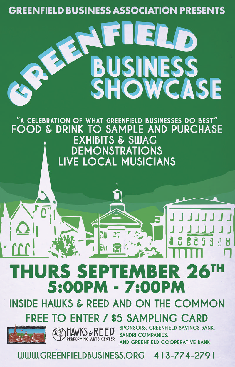 The Greenfield Business Showcase is free and open to the public, features live music, and alcohol and food for purchase on the premises.