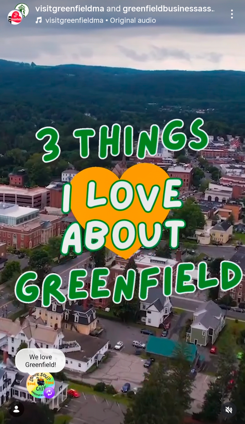 As you may have seen on Social Media, we are working on a new series with Susan from the Office of Economic Development, and she would LOVE to know what YOU love. With these sweet vids playing on both the Visit Greenfield and GBA's Instagram, we're spreading the love all over.
