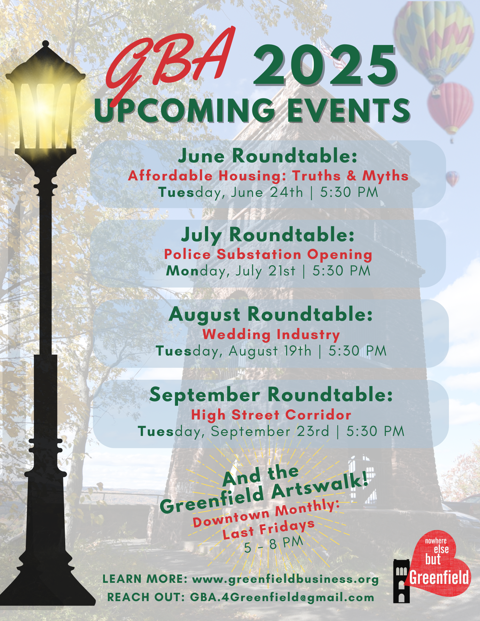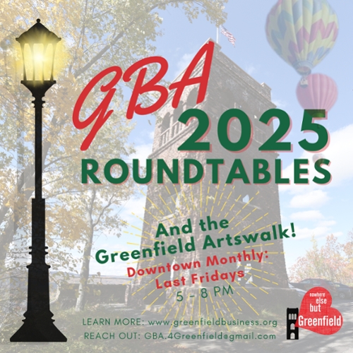 GBA Roundtables bring together business owners and stakeholders to discuss the needs, unique values, and potential improvements for a specific corridor, project, or topic. The Greenfield Business Association is a strong ally and advocate for businesses across our small city, and our work is strengthened by the knowledge and communication provided directly by our business community.
